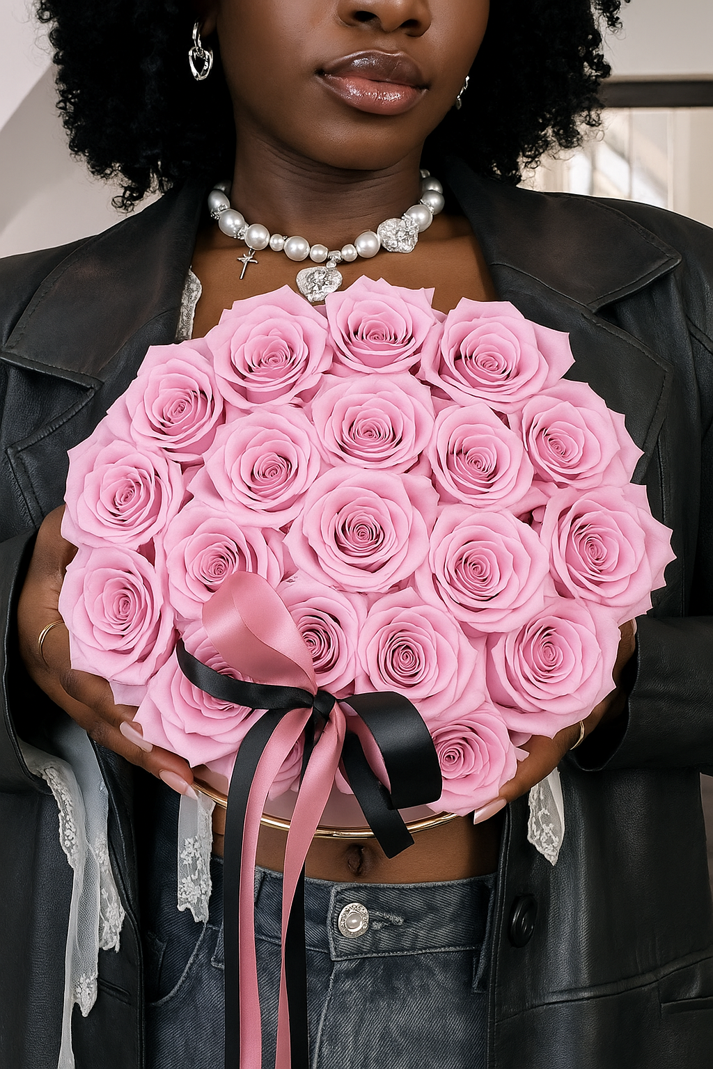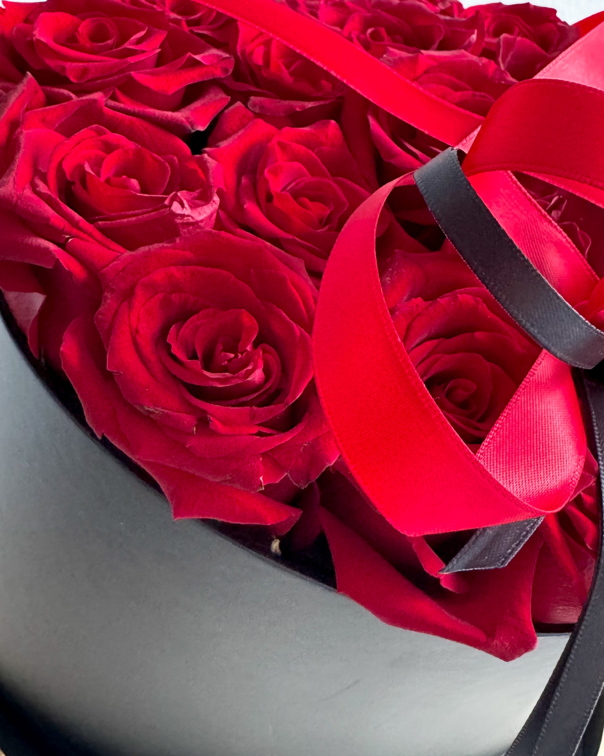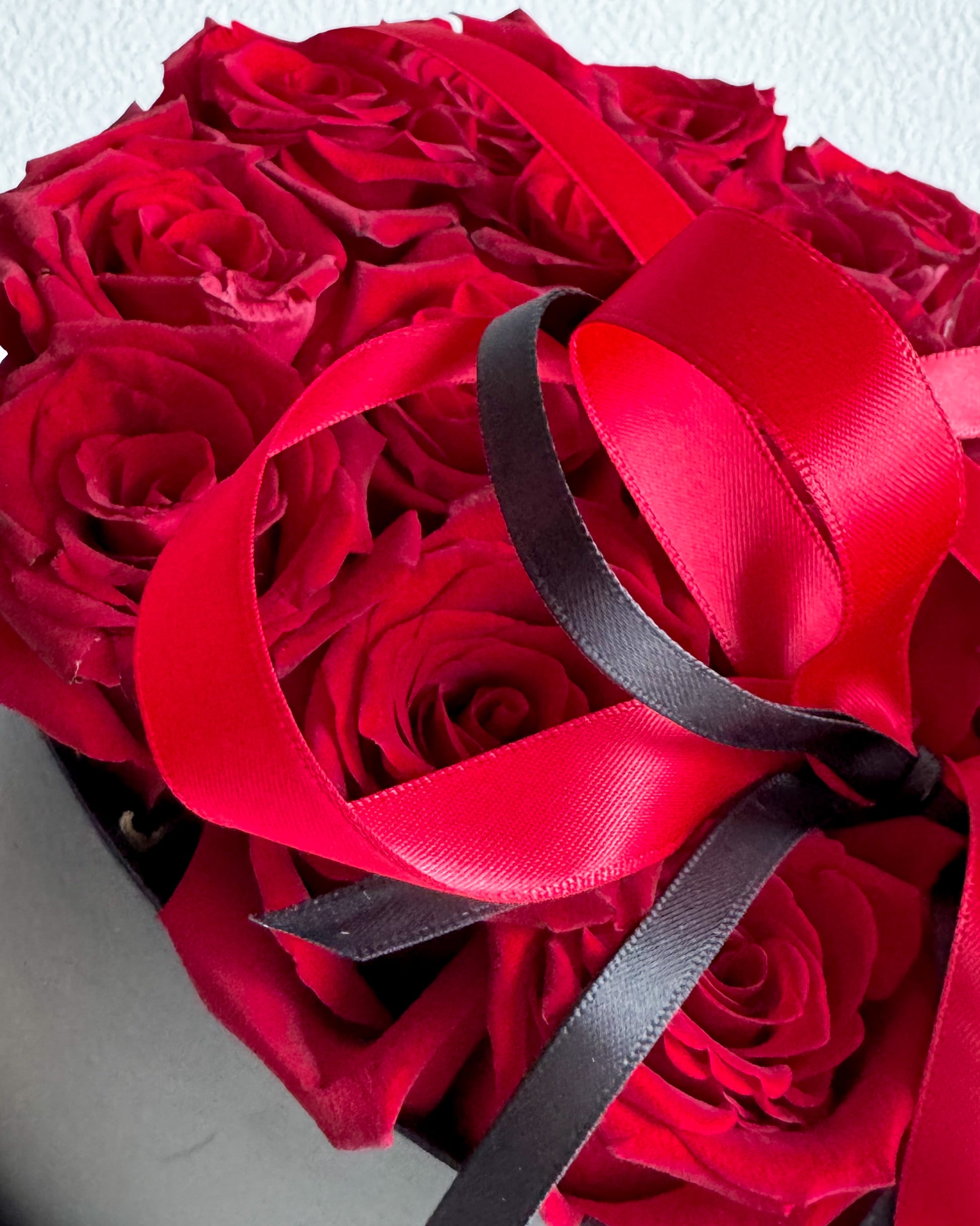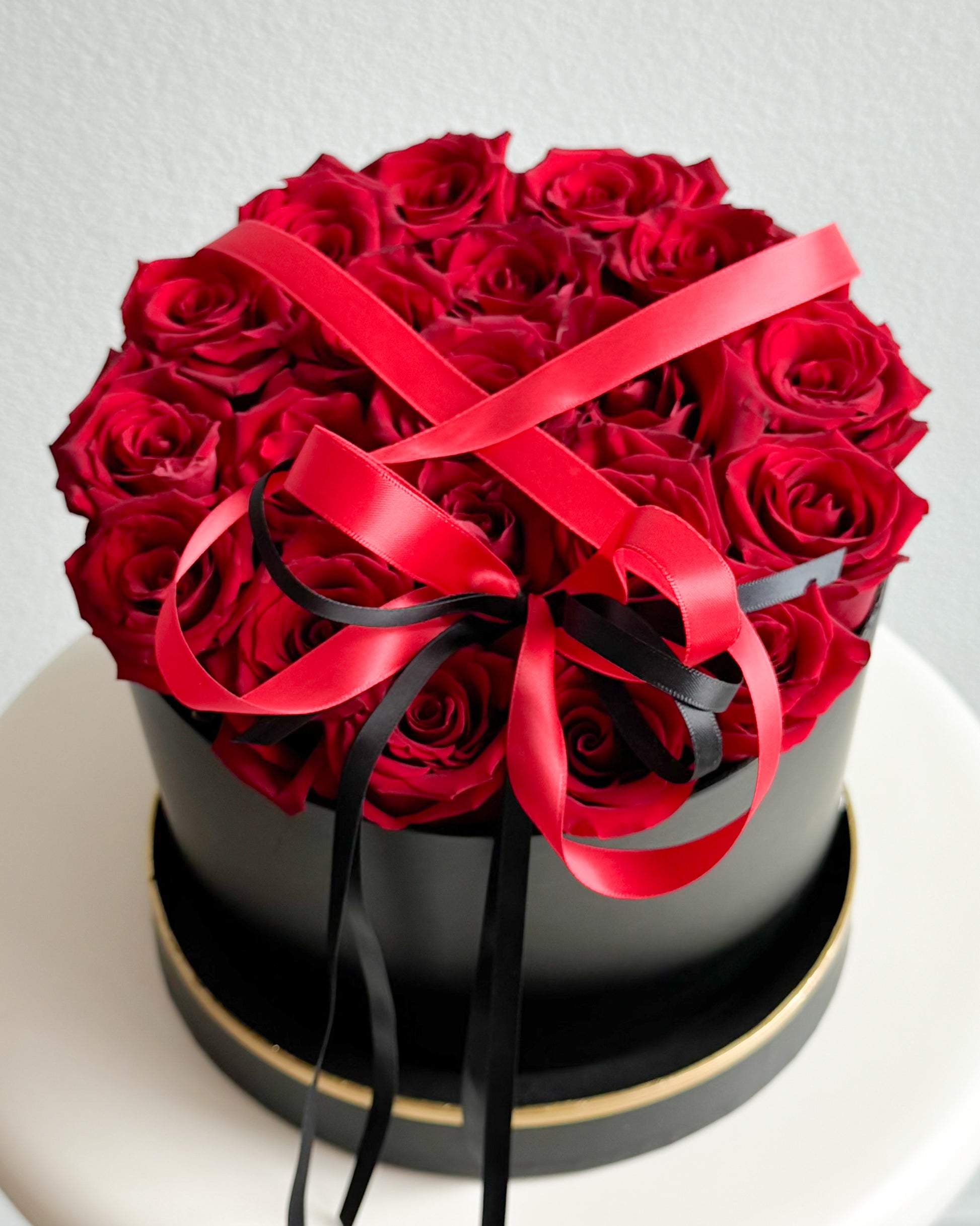 Okay, folks, this right here is the ultimate statement piece. Deep red roses packed into a sleek black box, tied up with bold satin ribbons—this isn’t just a floral arrangement; it’s pure power, romance, and class in one. It’s giving luxury, it’s giving passion, and it’s giving I know how to impress. You wanna show love, respect, or just flex a little? This is it.