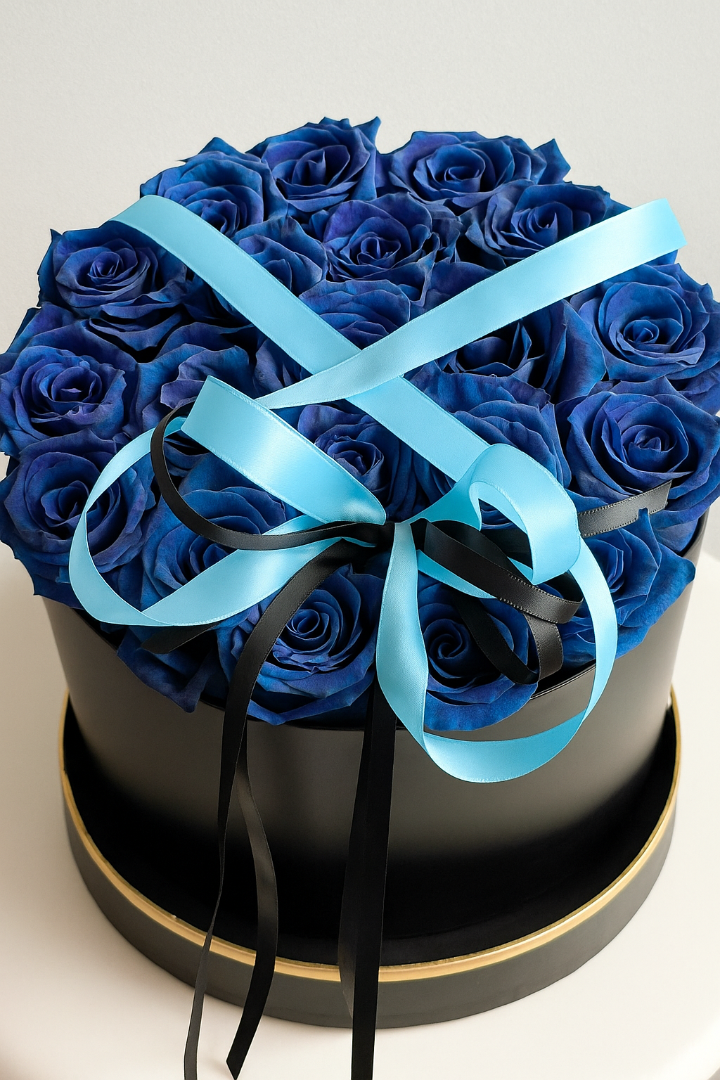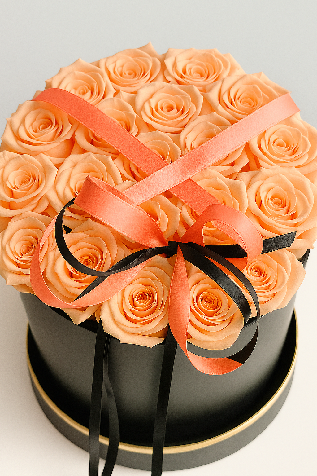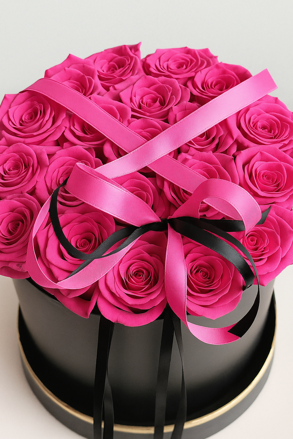 Premium rose blooms, Luxe hatbox, Satin ribbons