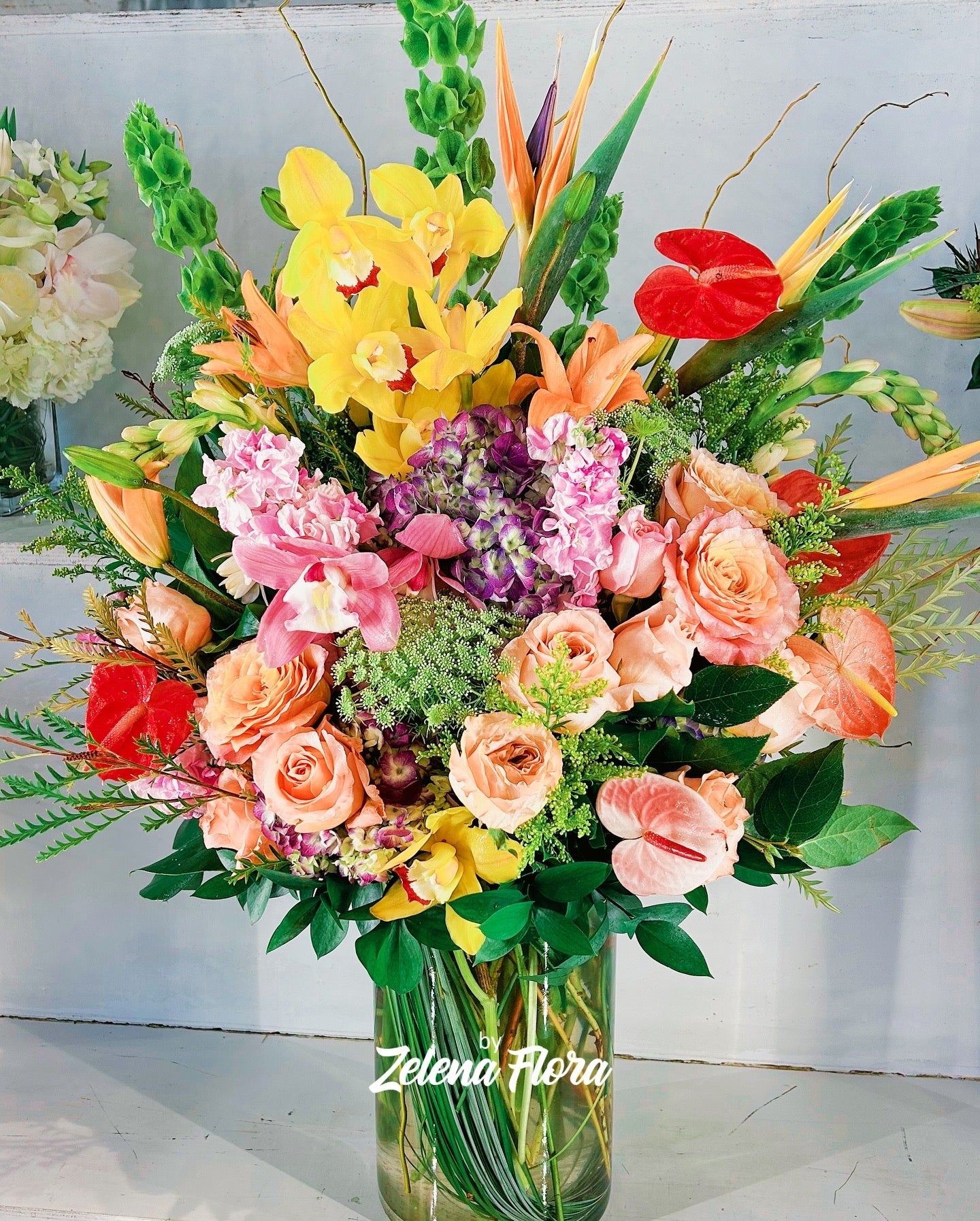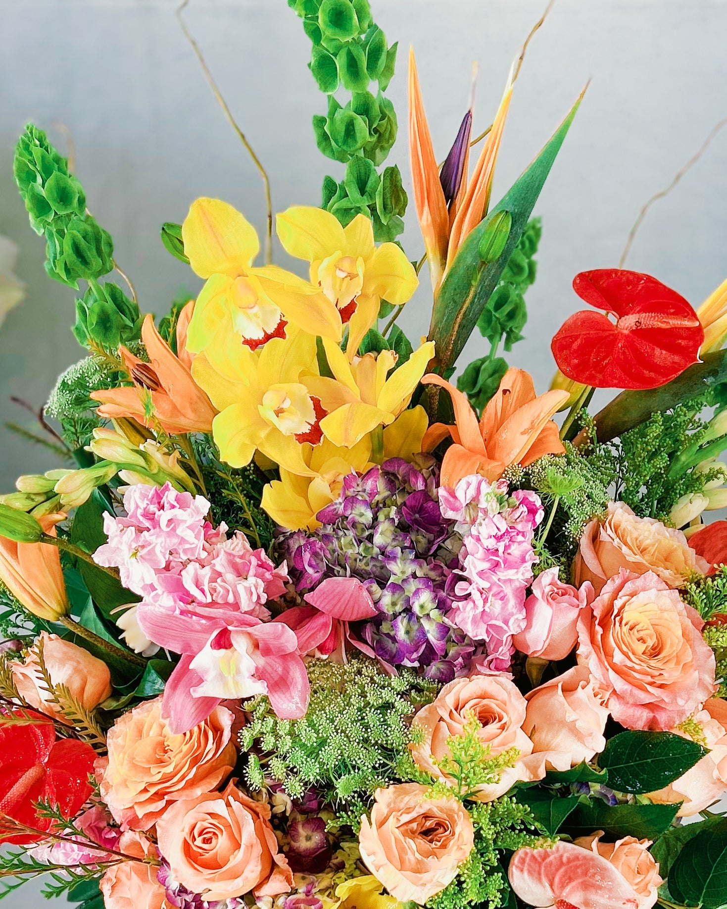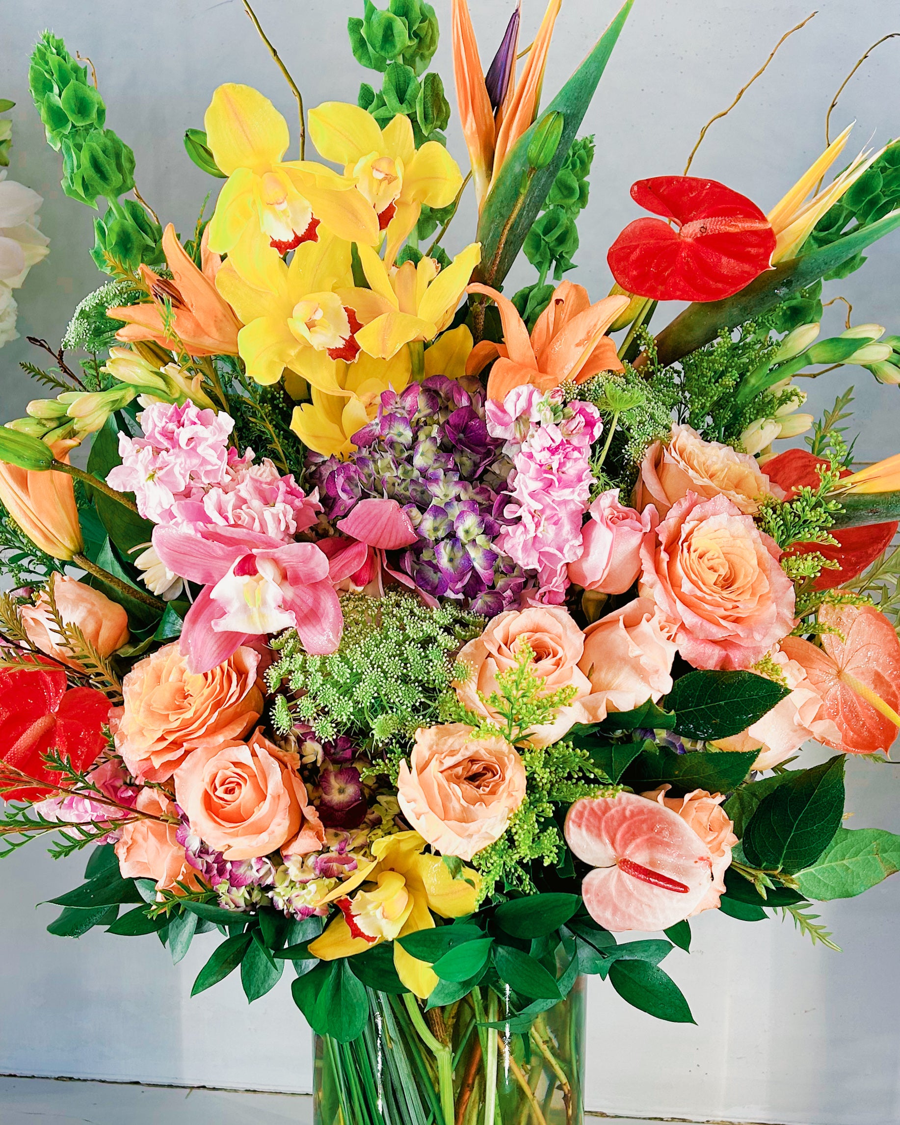 This bouquet’s got serious personality! It’s bold, bright, and totally unapologetic with pops of fiery orange, sunny yellow, and deep reds. The mix of exotic flowers like bird-of-paradise and lush roses makes it feel high-end, but still super fun and approachable. It’s like the perfect mix of tropical vacay vibes and romantic sophistication – a total showstopper for any occasion.