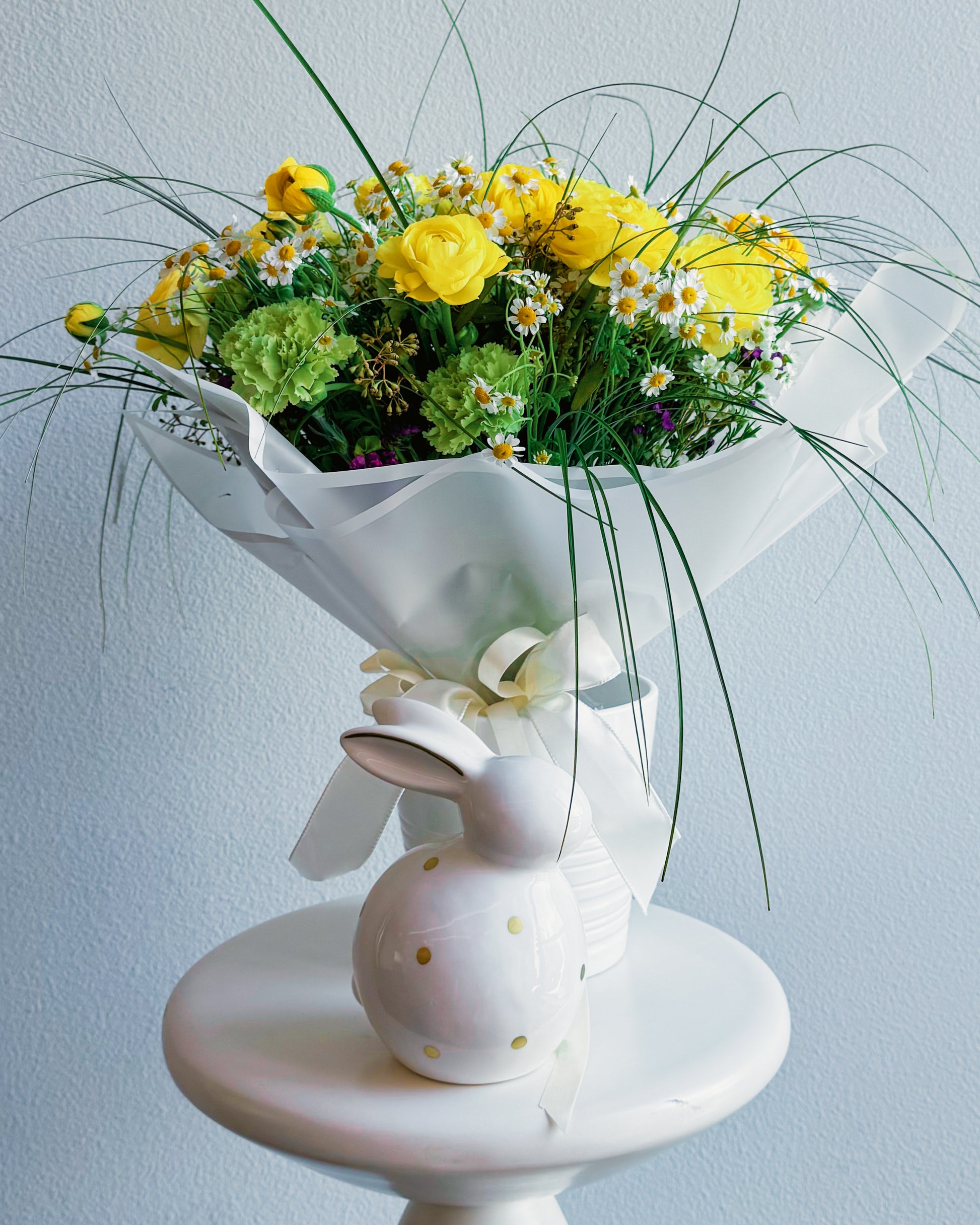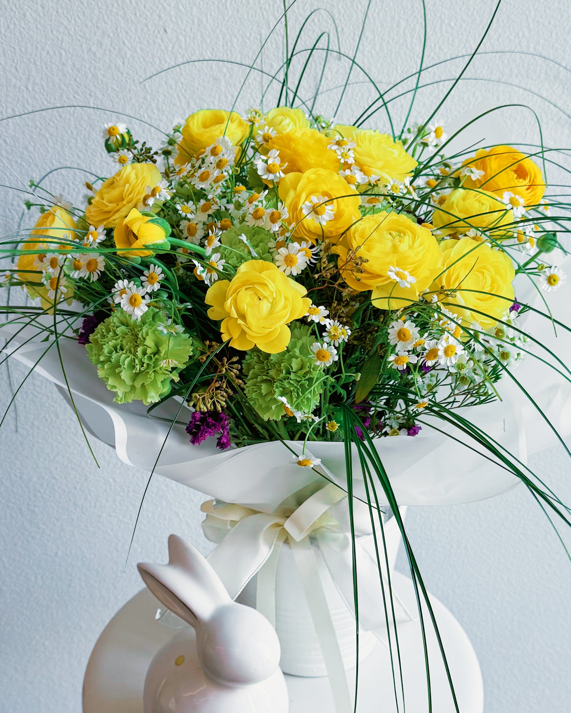 This cutie is called Eggstra Pretty for a reason — it’s sunshine wrapped in petals, with happy lil' daisies and bright yellow ranunculus popping like Easter candy. It’s the kinda bouquet you gift when you wanna say “you make life brighter,” but like, in flower language. It’s light, fresh, and full of spring joy — like the first sunny brunch after a rainy week. Perfect for the some-bunny in your life.
