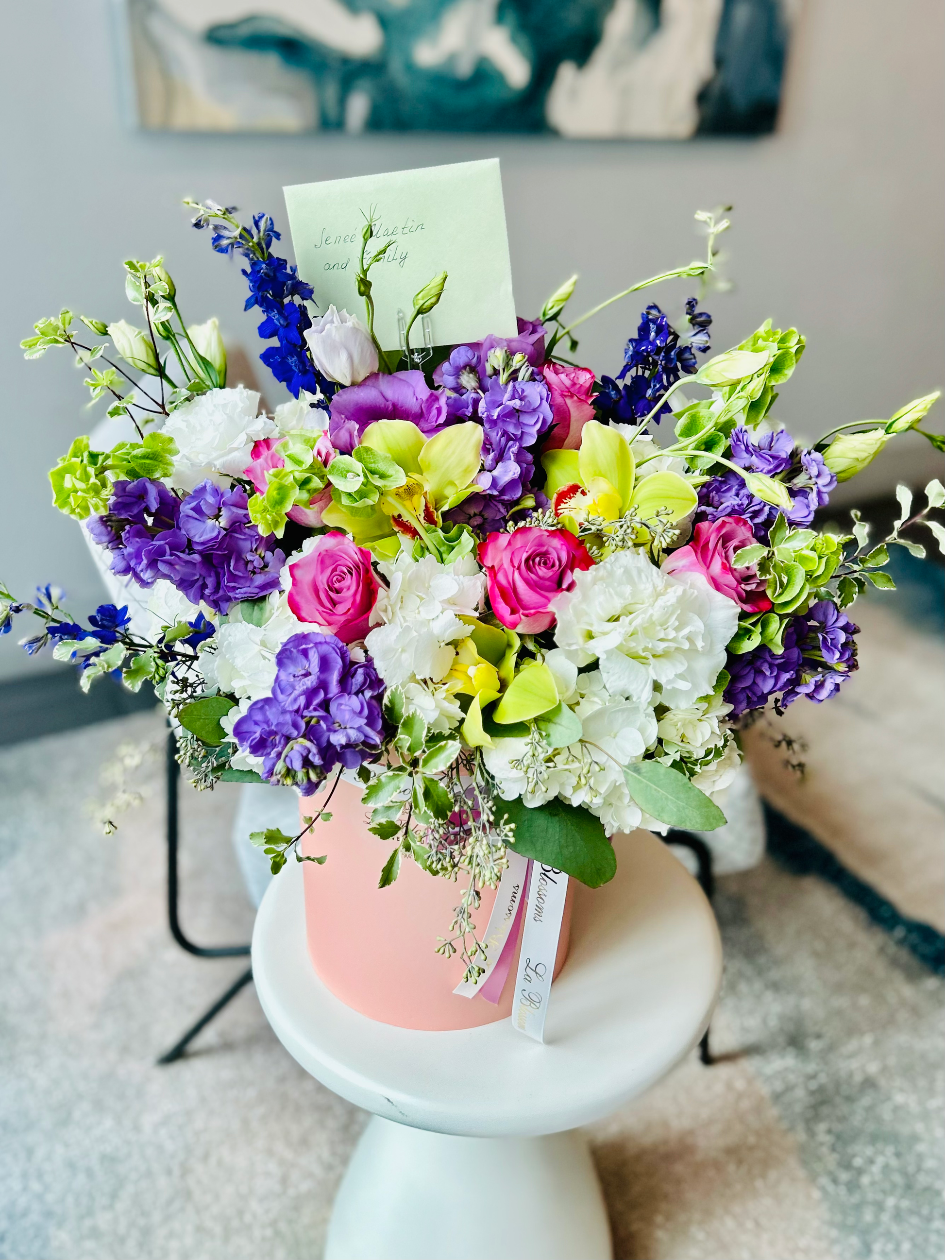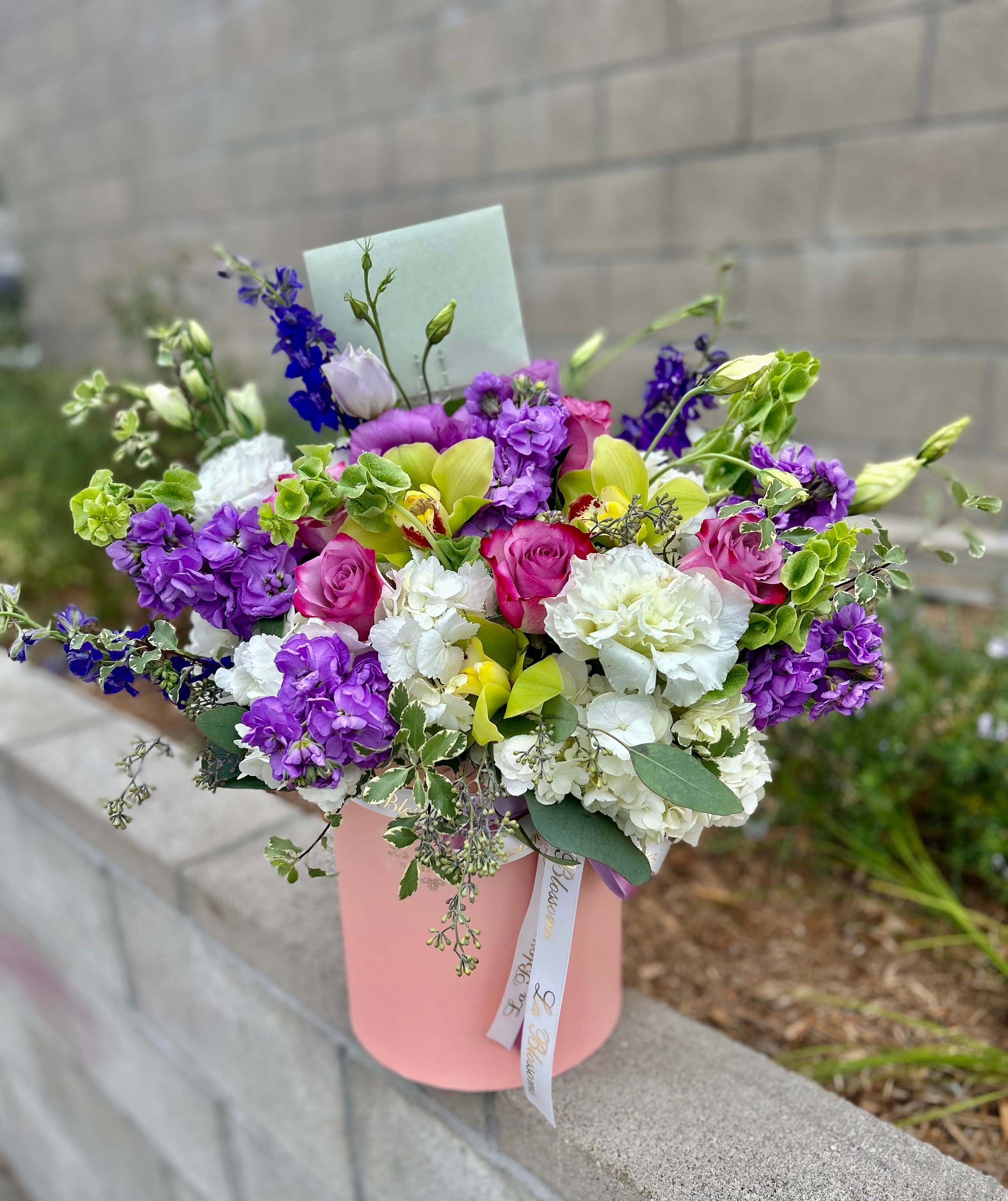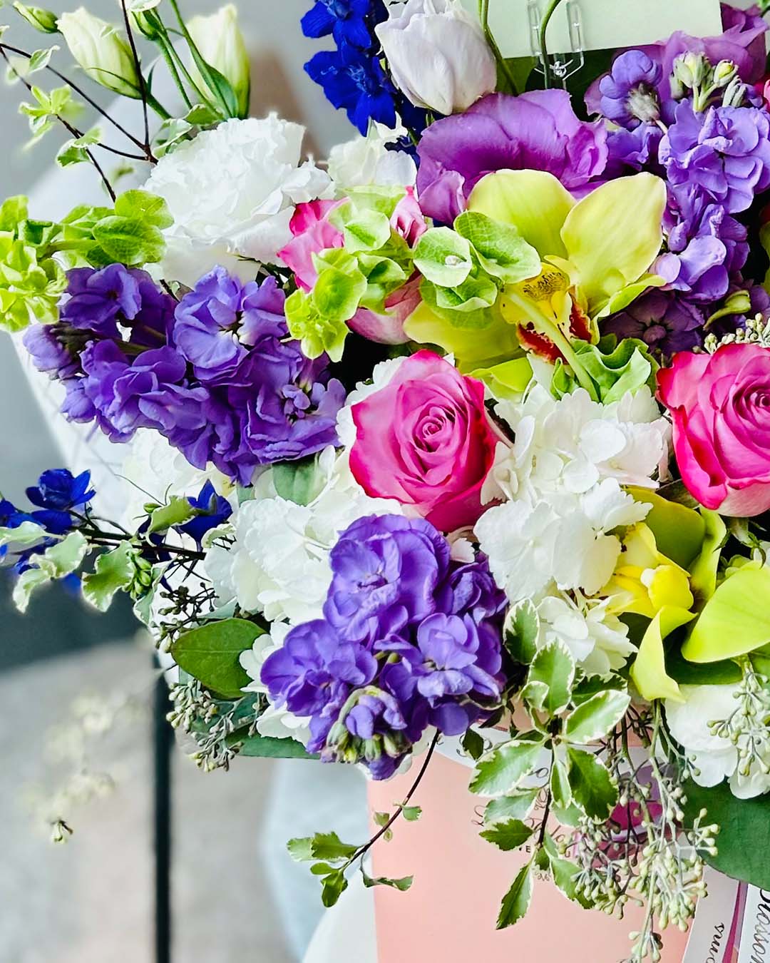 This English Garden arrangement is giving major springtime vibes! Packed with pops of pink, purple, and green, it’s like a mini garden in a box. Perfect for birthdays, anniversaries, or just flexing some major flower energy. Plus, that pastel pink box? Straight-up classy. Totally a head-turner for any occasion.