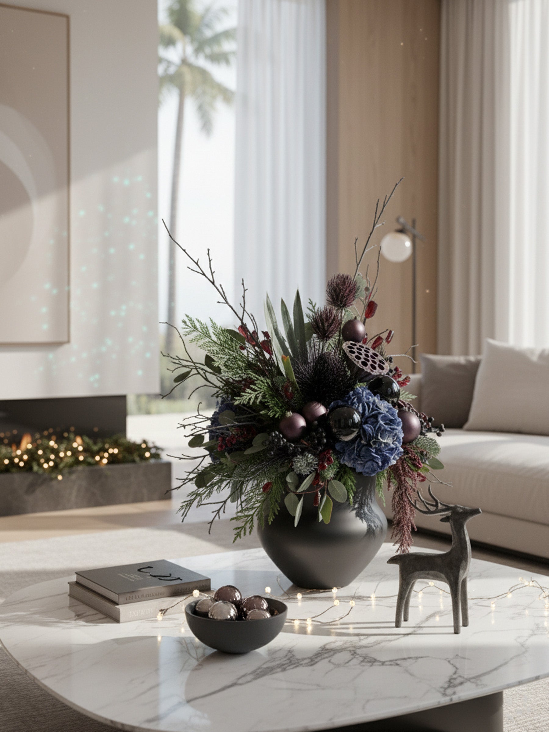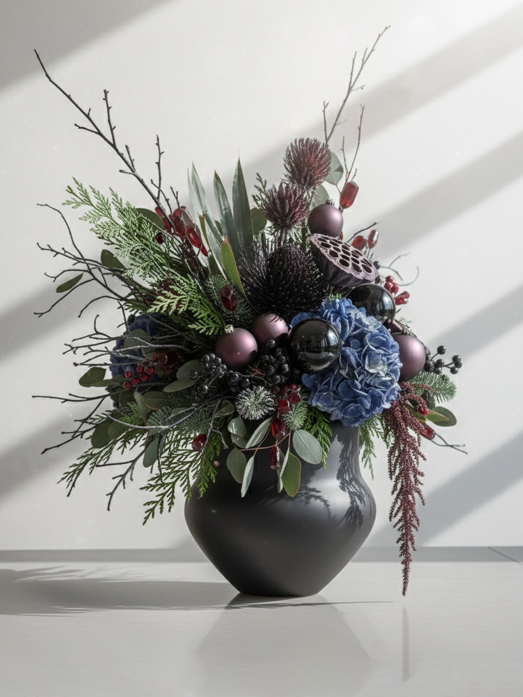 This piece doesn’t scream Christmas — it whispers glamour. It’s the floral equivalent of a private rooftop dinner overlooking LA on December 24th. A little daring, endlessly elegant, and designed to last long into the season. Created for those who don’t buy flowers - they collect moments.