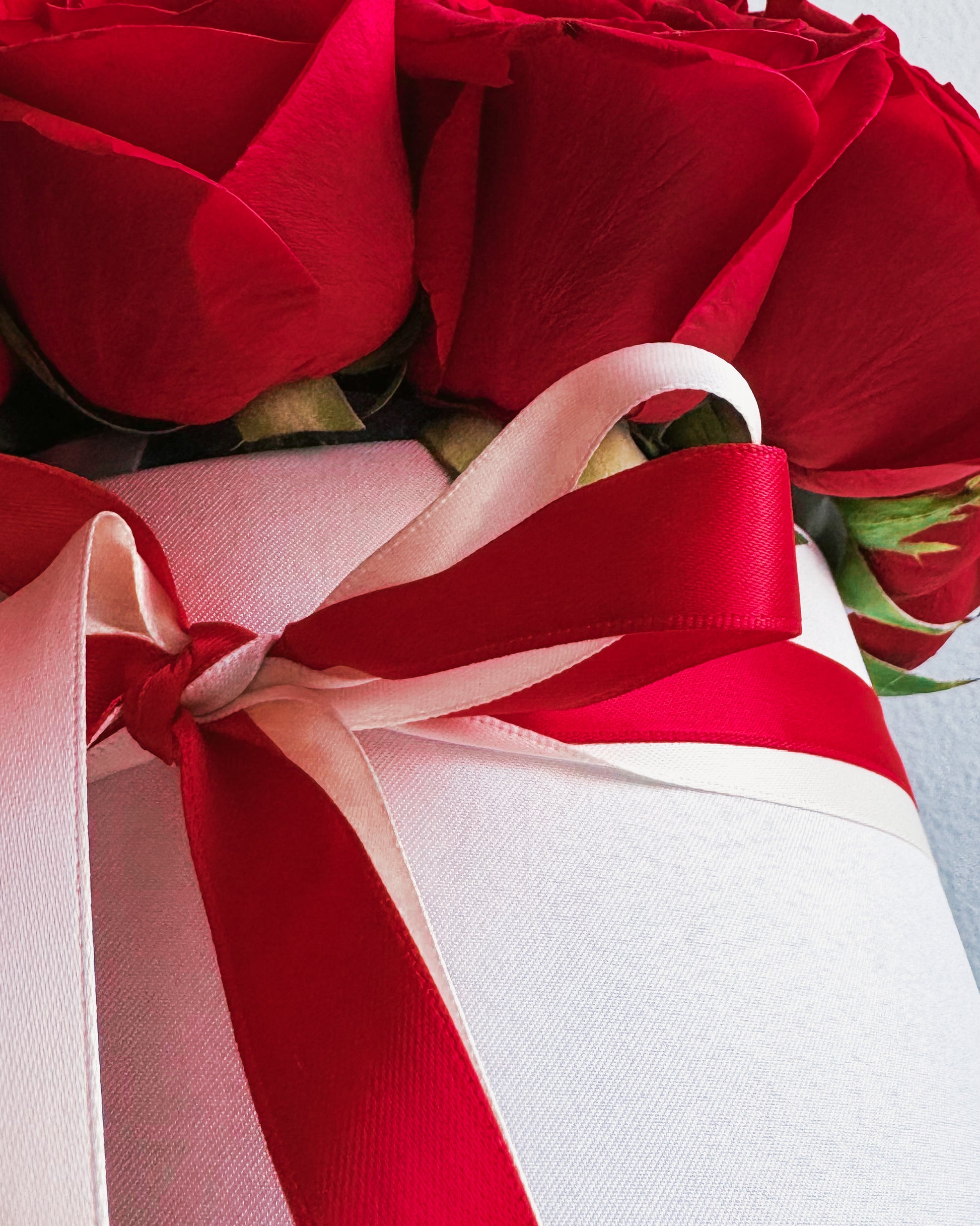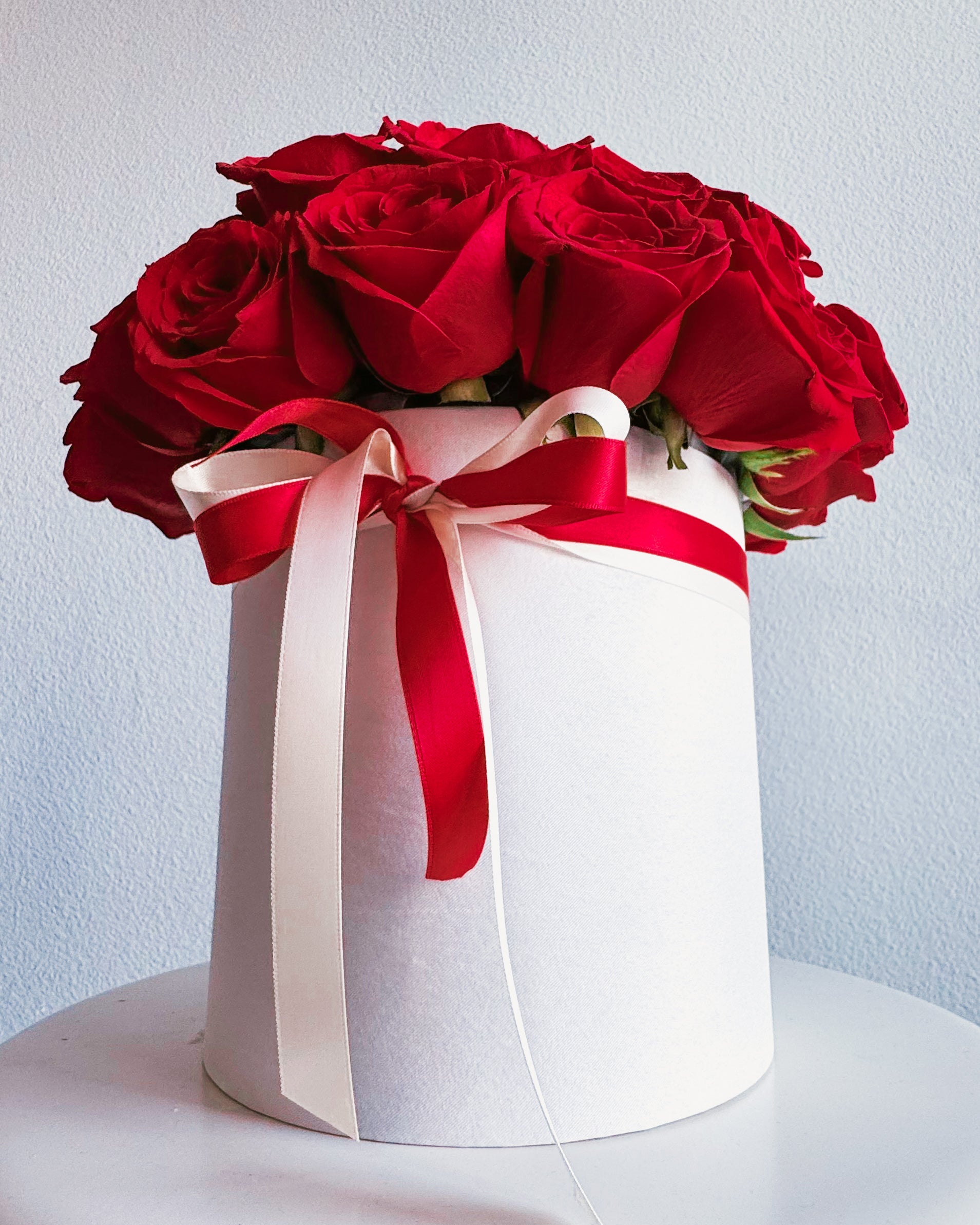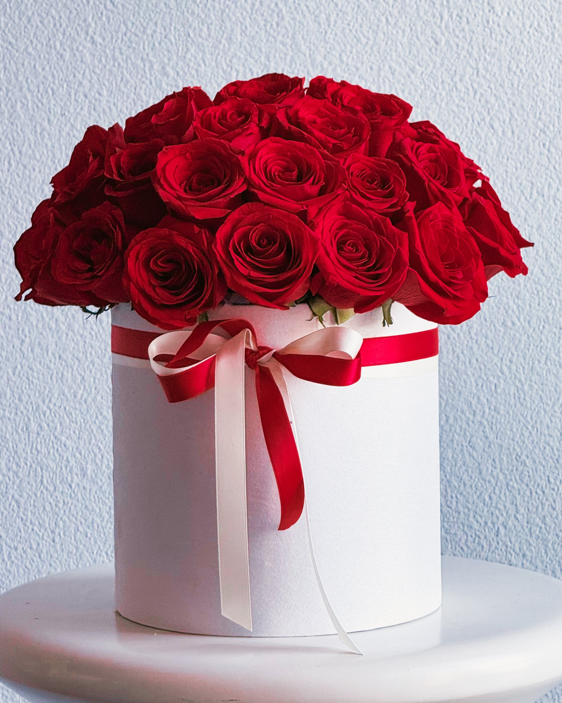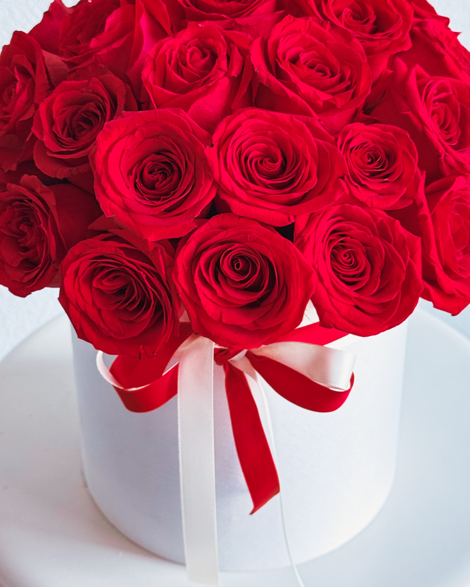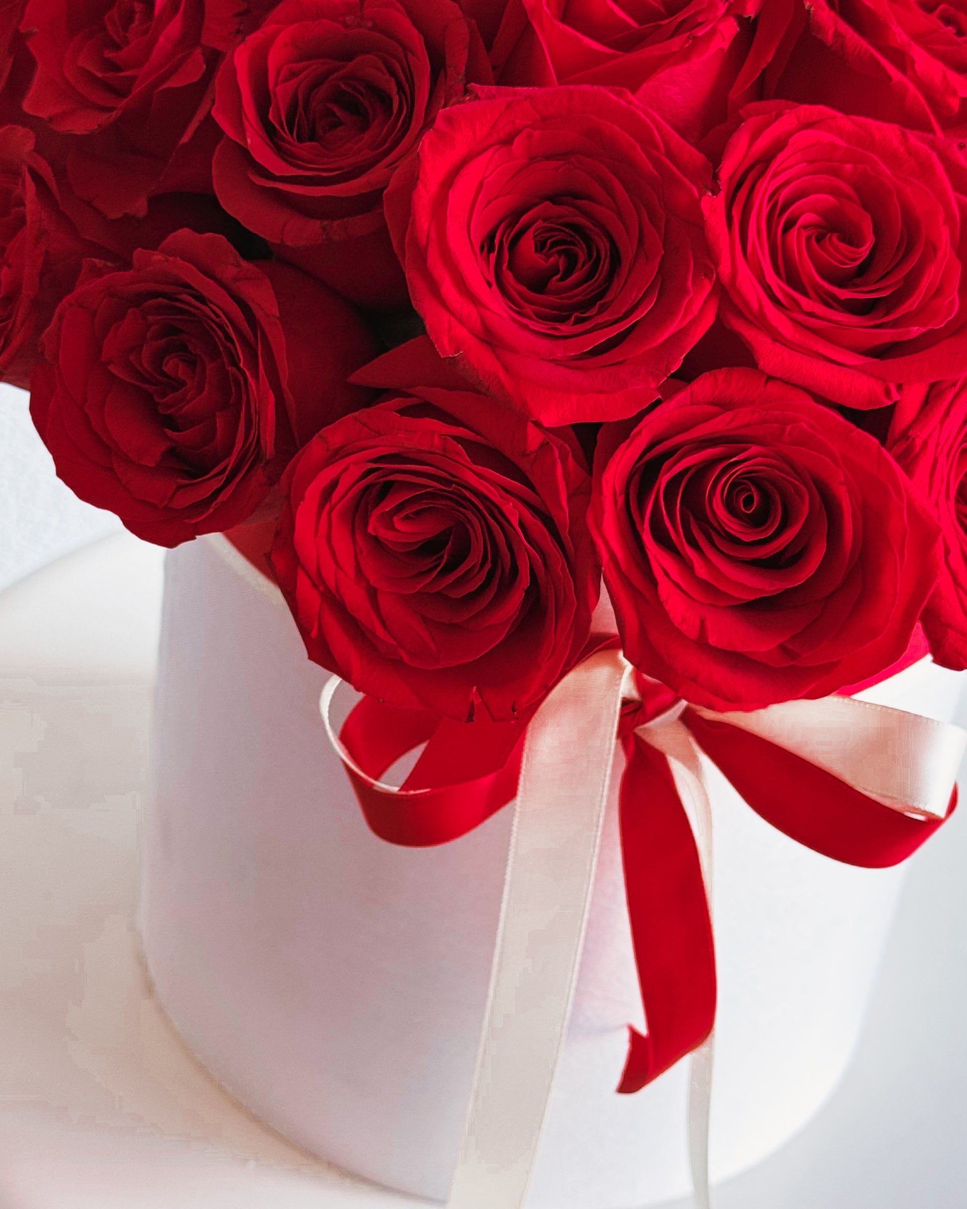 This ain’t just a bouquet -it’s a whole mood. Deep red roses stacked to perfection in a sleek white hatbox, tied up with a silky bow like the ultimate love letter. It’s bold, luxe, and straight-up stunning. Perfect for making a statement, turning heads, or just showing someone they mean everything. No words needed - just roses.